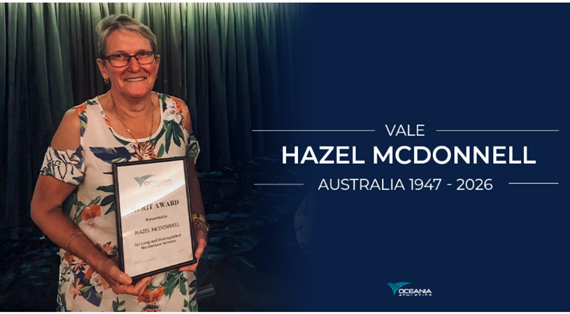 It is with sadness that OMA has learnt of the passing on Sunday Jan 18 of Hazel McDonnell, and we wish to acknowledge her service to our Oceania Masters Athletics Council as Secretary from 2019 to 2024.